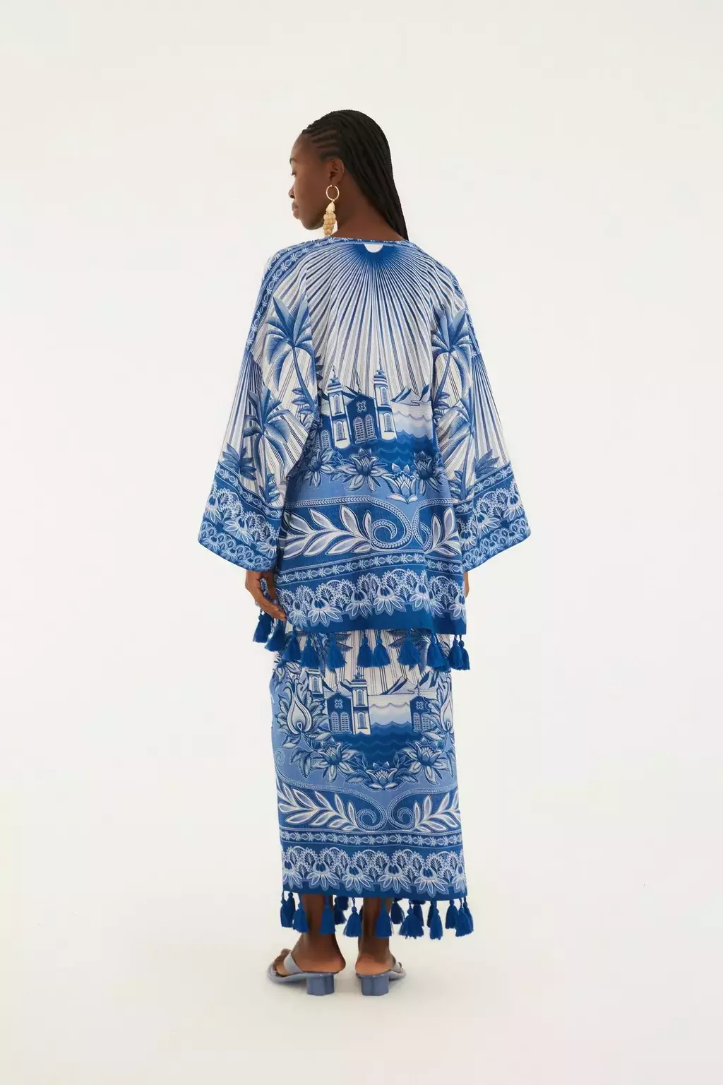 saia estampada afeto tropical. modelagem fluida com cintura alta e abotoamento frontal, trazendo leveza e liberdade aos movimentos. acabamento delicado nas bainhas, eleva o charme em passeios à beira-mar ou almoços casuais ao ar livre. FARM RIO original - verão 26.